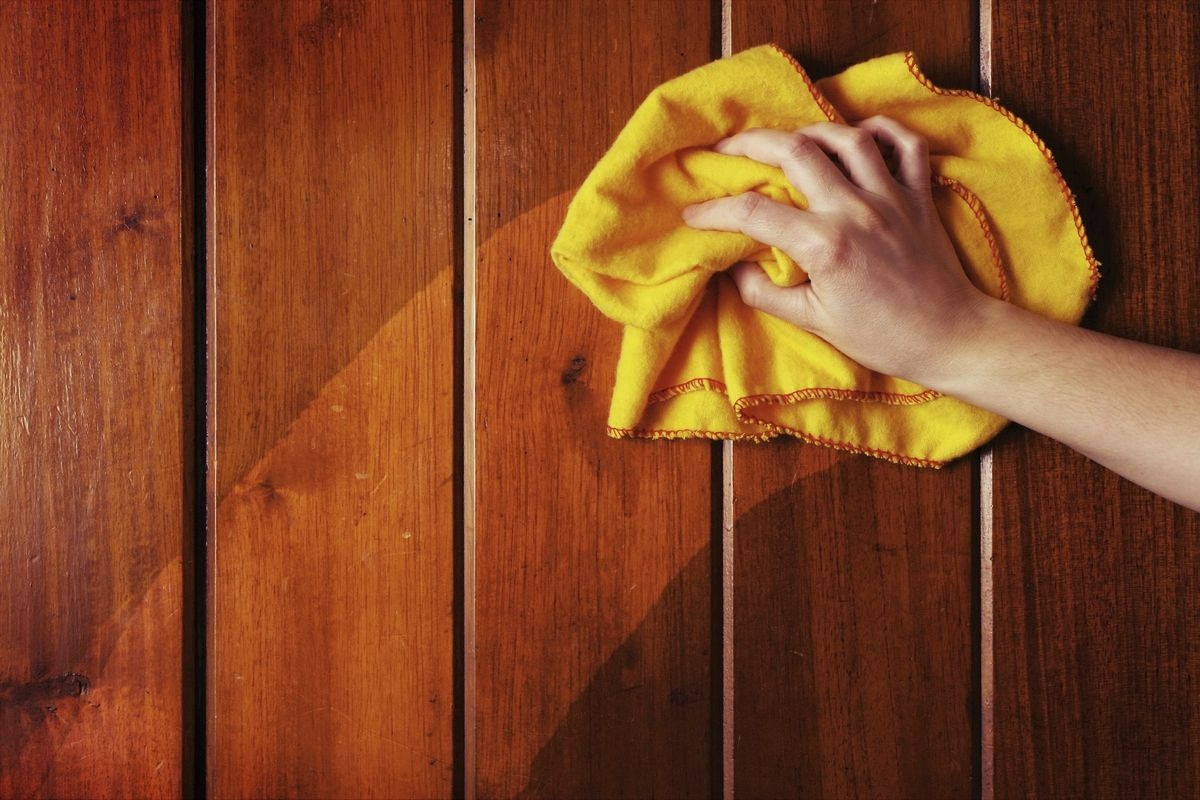Inumidite un panno di cotone con la miscela, senza bagnarlo eccessivamente, e passatelo su tutta la superficie con movimenti lunghi e delicati. Non strofinate con forza: il legno risponde meglio a tocchi costanti e delicati. Una volta terminato, passate un altro panno pulito e asciutto per eliminare ogni traccia di umidità.